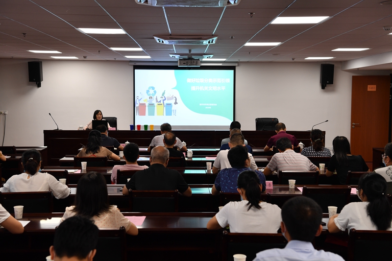 活動現場 戴常坤 攝 活動通過聽講座、互動提問、誦經典、送吉祥等環節,進一步教育引導機關黨員干部在開展垃圾分類工作中率先示范,在單位、家庭、社區中模范帶頭落實好垃圾分類工作,提升機關文明水平,用實際行動助力國家生態文明試驗區建設。(錢小玲) |