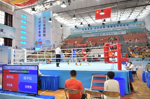 8月29日下午,十七屆省運會“中水電基礎局杯”青少年部拳擊比賽第五日賽程繼續在南武體育館開“打”。今日賽程共有8場半決賽和10場決賽,4名南平隊員出戰半決賽,9名南平隊員出戰決賽,向多個級別的金牌發起沖擊。 在今天的決賽中,出現了兩場南平隊員“德比”之戰。選手們揮舞著重拳,敢打敢拼,配合快速移動的步伐以及靈活變化的招式,在大汗淋漓中為金牌而戰,充分展現了拳擊運動員頑強拼搏、不屈不撓的精神風貌。回合間隙,助手們上臺為拳手們扇風送水,一旁的教練分析場上形勢,時而在耳旁傳授妙計。臺下觀眾吶喊的不再是某個運動員的名字,而是山呼海嘯的“南平加油……”