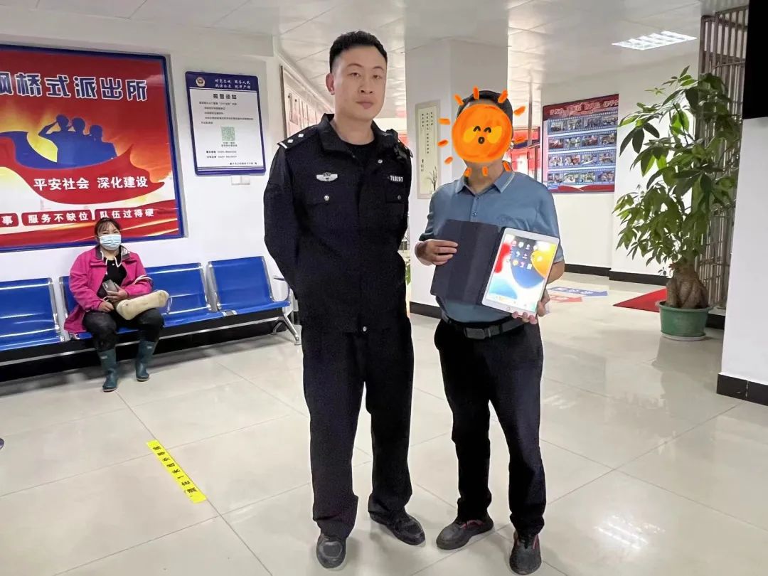 民警趕到現場后,發現一名白發老人正無助地徘徊在路邊,該路段來往車輛不斷,十分危險,民警趕緊將老人摻扶到安全地帶。 “阿婆,您說慢一點,沒關系的,我們不著急”。因老人年事已高,言語模糊,無法說出自家的住址,民警一邊安撫老人情緒,一邊查詢有用的信息,經多方查詢,民警終于核實到老人真實身份。幾經周折后,民警成功聯系到老人家屬,并驅車將其送回家中。 老人家屬見母親遲遲未歸已尋找多時,看到平安歸家的老人,心急如焚的家屬終于松了一口氣。經詢問,老人已年近百歲,當晚出門逛街后便迷路了。 老人獨自往外出可隨身備好信息卡,在遇到緊急情況后,民警也可根據信息卡為其提供幫助。 電腦不慎丟失 民警及時尋回 “警察同志,我的平板電腦不見了,里面存放的個人資料對我非常重要,拜托你們幫我找一下。”10月16日,市民趙先生急匆匆跑到四鶴派出所尋求幫助。