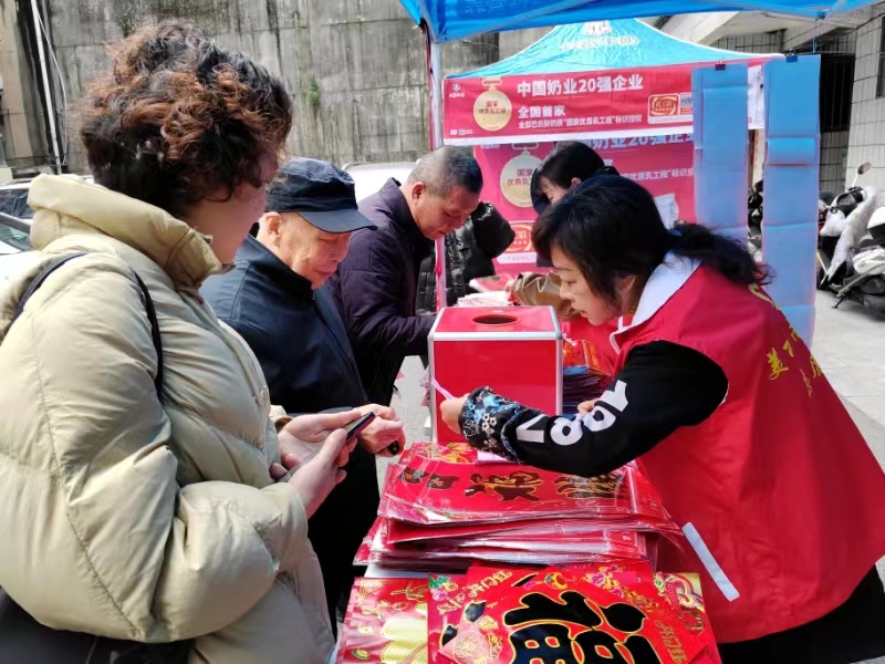 春節(jié)將至,為提前營(yíng)造歡樂(lè)祥和的節(jié)日氛圍,年1月20日上午,紫云街道三元社區(qū)、紫云街道三元社區(qū)新時(shí)代文明實(shí)踐站聯(lián)合電力小區(qū)-旺家園物業(yè)服務(wù)中心、福建長(zhǎng)富乳品有限公司舉辦了“龍年盛世 迎新春送祝福”活動(dòng)。 活動(dòng)現(xiàn)場(chǎng),旺家園物業(yè)公司為電力小區(qū)的居民精心準(zhǔn)備了內(nèi)容豐富的春聯(lián)和福字,春聯(lián)與“福”字氣韻生動(dòng),寓意喜慶吉祥,滿載美好祝愿。9點(diǎn)開(kāi)始,電力小區(qū)的居民紛紛手持入場(chǎng)券到春聯(lián)區(qū)領(lǐng)取春聯(lián)并參與幸運(yùn)抽獎(jiǎng)活動(dòng),每位居民領(lǐng)到自己滿意的對(duì)聯(lián)、福字和獎(jiǎng)品,臉上洋溢著幸福的笑容。 福建長(zhǎng)富乳品有限公司的工作人員給每個(gè)居民分發(fā)酸奶乳制品一盒,年長(zhǎng)的居民紛紛表示:“我們年紀(jì)大了,就要多喝點(diǎn)酸奶乳制品,促進(jìn)腸道消化,很感謝你們?yōu)槲覀兝夏耆丝紤]。”精心準(zhǔn)備的酸奶乳制品受到大家的認(rèn)可和好評(píng)。 此外,三元社區(qū)新時(shí)代文明實(shí)踐站的志愿者向居民發(fā)放各類宣傳材料,宣傳延平區(qū)爭(zhēng)創(chuàng)全國(guó)文明城市、省級(jí)文明城區(qū)測(cè)評(píng)調(diào)查問(wèn)卷、民法典進(jìn)社區(qū)普法宣傳、反有組織犯罪法、防養(yǎng)老詐騙、禁毒、平安三率宣傳、消防安全宣傳、靈活就業(yè)宣傳、居民醫(yī)保參保及繳納、就業(yè)及勞動(dòng)保障宣傳、交通安全宣傳等相關(guān)內(nèi)容,讓政府政策能夠真正的深入人心。 本次活動(dòng)滿足了居民春節(jié)貼春聯(lián)的民俗需求,也讓居民們感受到中華傳統(tǒng)文化的魅力。下一步,社區(qū)將開(kāi)展更多形式多樣、內(nèi)容豐富、群眾廣泛參與的文化活動(dòng),增強(qiáng)居民幸福感和獲得感。希望大家在新的一年里,身體健康,事事如意,年年有福。 |