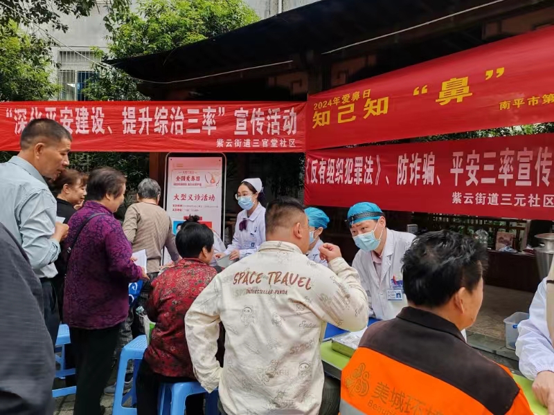 2024年4月13日是第22個“全國愛鼻日”,今年的主題是:“鼻腔疾病預防,重在日常護理”。在“愛鼻日”到來之際,為進一步加強公眾對鼻腔健康的關注,4月12日上午,紫云街道三官堂社區新時代文明實踐站聯合南平市第一醫院耳鼻咽喉專家聯合在三元公園舉行義診活動,普及鼻疾病常識,為有需要的患友面對面答疑解惑。 活動現場,社區志愿者組織居民排好隊,有序進行看診,同時對來現場的居民進行平安“三率”宣傳,進一步推動平安建設工作,提升群眾對平安三率的滿意率、知曉率和參與率。 |