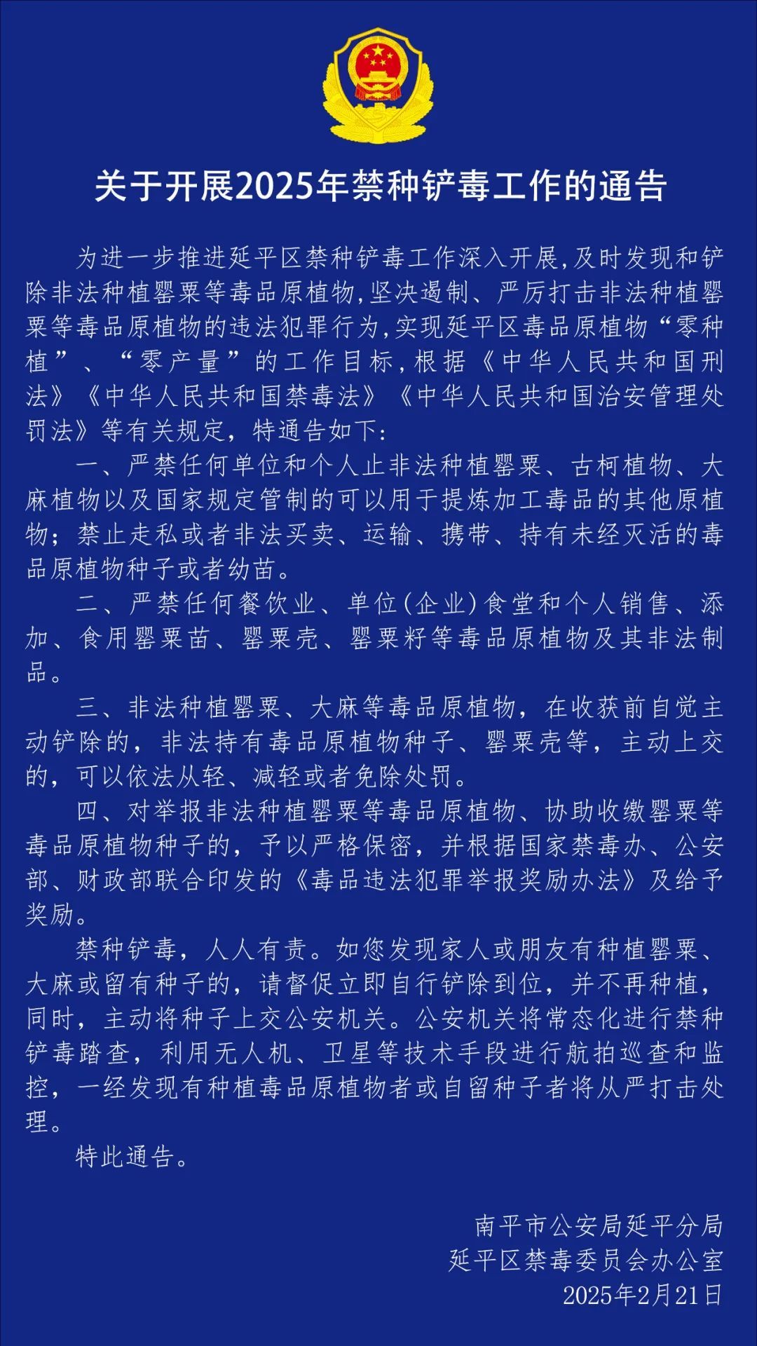 關(guān)于開展2025年禁種鏟毒工作的通告