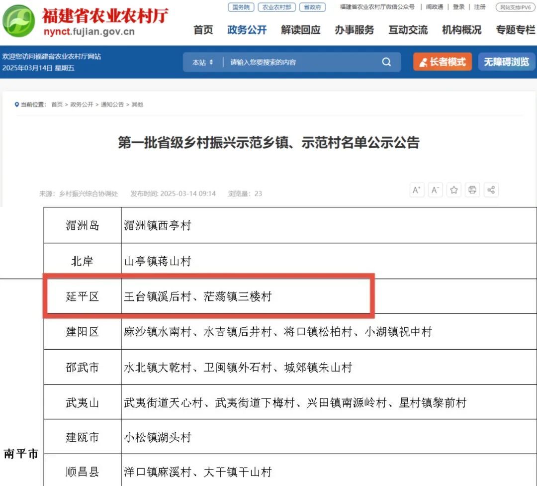 日前,全省首批省級鄉村振興示范村名單公布,延平區溪后村、三樓村成功上榜。這份榮譽的背后,正是在市委、市政府的堅強領導下,延平區深入踐行“千萬工程”經驗,充分用好“五合一”鏈條,以項目建設為抓手、創新推動三產融合激活鄉村振興“一池春水”的生動實踐。