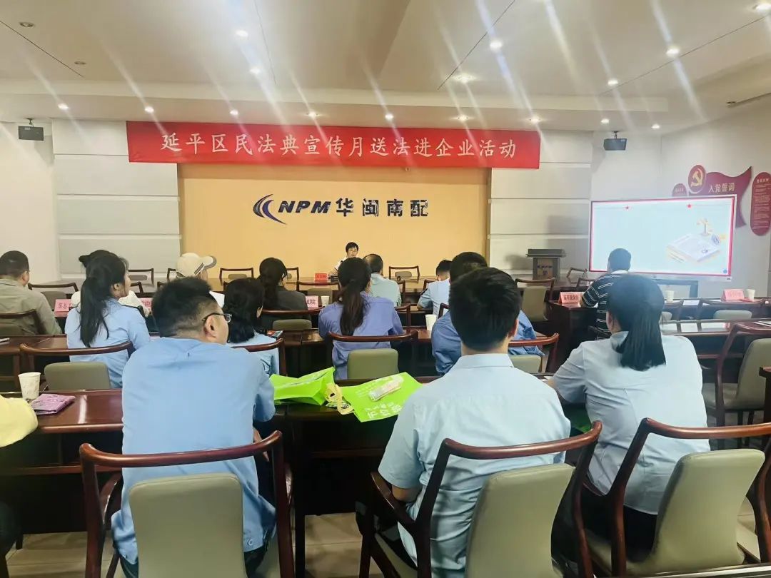 為深入貫徹落實(shí)民法典,優(yōu)化法治化營(yíng)商環(huán)境,助力延平區(qū)經(jīng)濟(jì)高質(zhì)量發(fā)展,延平區(qū)開(kāi)展民法典宣傳月送法進(jìn)企業(yè)活動(dòng)。5月8日,圍繞區(qū)委、區(qū)政府相關(guān)工作部署,延平區(qū)司法局聯(lián)合多部門(mén)走進(jìn)深耕發(fā)動(dòng)機(jī)配件研發(fā)生產(chǎn)領(lǐng)域的華閩南配集團(tuán)股份有限公司,該企業(yè)作為高新技術(shù)企業(yè),產(chǎn)品廣泛配套國(guó)內(nèi)多家主機(jī)廠,在行業(yè)內(nèi)頗具影響力,此次活動(dòng)為企業(yè)送上法治“大餐”。