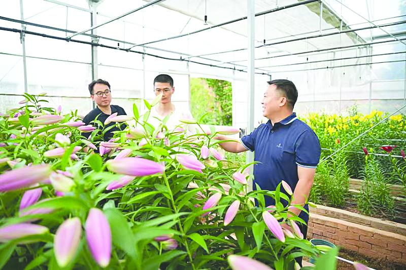 7月9日至11日,北京林業大學園林學院(國家花卉工程技術研究中心)院長助理、園林系主任孫明教授(左),博士后唐玉超(中),博導、林草專家、高級園藝師董欽金(右)一行來到延平,深入百合種業振興項目、種質基因庫和花卉物流交易中心,為延平百合把脈問診,與當地深度洽談合作。圖為三位專家在種質基因庫進行學術討論?!。ㄙY料圖片) 遠山如黛,長河似練。金秋九月,一顆顆百合花種球貯藏在延平區大橫鎮廣袤田野的冷庫中,它們即將結束為期數月的“休眠”期,移栽花田,迎來下一季的綻放…… 百合花,花朵碩大,花色鮮艷美麗,是世界名貴花卉之一,也是南平市的市花,其在延平區的種植歷史可追溯至20世紀80年代。從埋下第一粒人工種球開始到大面積推廣種植,延平逐漸成為全國百合花鮮切花第三大主產區。從打破種球進口依賴,百合種源自繁突破1000萬粒實現國產化,到主動牽手大院大所進行科研攻關;從推動國內三大百合花基地互動互補,到組建國企,開發高附加值產品;百合花產業在種源端、種植端、市場端不斷深耕細作,主動延鏈補鏈強鏈,百合鮮切花種植面積達8500畝,暢銷24個省市并出口新加坡,全產業鏈年產值達6.3億元,百合花不僅成為了南平市的一張亮麗名片,更成長為促進共富的“幸?;ā?。 從零起步到全國第三大主產區 “20世紀80年代,在時任南平市(今延平區)副市長盧世鈐的穿針引線下,上海市園林管理局在延平區茫蕩山寶珠村試種百合花成功,在國際花卉界引發關注。人民日報海外版稱‘看牡丹去洛陽,看百合去南平’?!北环N植戶稱為“花仙”的延平區林業局花卉辦主任陳文靖說起延平百合如數家珍。 1989年南平市第十屆人大常委會第九次會議通過,決定百合花為南平市花。但那時,百合花僅是一種象征,直到被譽為“百合花種植第一人”的延平區寶珠村村民盧柳余在高山區開辟出第一片人工百合花田,把鮮切花賣到上海,成功實現脫貧致富,讓農民們看到了“花樣經濟”的魅力。 1998年延平區在塔前鎮推廣百合種植,也正是這一年,陳文靖從大學園藝專業畢業,來到了塔前鎮。 “當時百合花在塔前鎮棚下村推廣了大概16畝,33戶?!标愇木富貞?。第二年,延平區百合種植擴大到了20畝,陳文靖也成為首批科技特派員深入田間地頭,開始長期服務各地花農。 “百合花產業真正迎來大發展,是在2010年?!标愇木刚f,當年延平爭取到省上資金支持,在王臺鎮新坑村流轉了360多畝的田地,統一平整土地,建設鋼架大棚,宣傳動員茫蕩山等高山區的花農到王臺鎮進行規模化連片種植。隨著該項目連續6年的資金扶持,百合花種植逐步從王臺擴大到峽陽、爐下、南山等地,百合花產業逐步成為延平重點產業。 2011年延平區花卉協會注冊成立,2012年延平區成立了花卉辦,從技術和產業發展上給予指導扶持。2014年,延平區被授予“中國百合之鄉”稱號,“延平百合”獲評國家地理標志證明商標。延平百合花產業從無到有,從小到大,迎來了發展的春天。 “科特派的技術支持,還有協會、政府在產品銷售上的幫助,百合花產業一下就發展起來了。目前我們村適合種百合的田地基本上都種上了?!笔∪舜蟠?、王臺鎮溪后村村支書,同時也是百合種植大戶的魏長俊告訴記者。溪后村等各村積極推廣“秋種百合—夏種水稻”的花稻輪作模式,不僅減少化肥用量,增加糧食產量,還提升了百合花品質,實現土地利用率與產能的雙提升。 “在產業發展中,我們建立了‘科技特派員—協會會長—協會理事—種植戶’四級網格化管理服務模式。從新品種推廣、土壤改良、防寒抗凍、病蟲害防治、市場拓展等各個環節進行服務,編制《百合花種植實用技術手冊》,讓種植戶無后顧之憂?!标愇木刚f。 為解決花農的資金問題,區委區政府積極協調農商、郵儲、興業等各大銀行推出“百合貸”,不僅利率低、額度高,手續還更加簡便。“不需要擔保,不需要資產抵押?!毖悠絽^花卉協會會長葉盛立告訴記者,目前整個協會大概貸款3000到4000萬元,僅他自己就貸了100多萬元,用于種球、農資購買。金融“活水”的滴灌讓百合花產業更加茁壯成長。 新平臺、新渠道、新模式,讓百合花產業綻放出無限活力。記者在區鄉村振興數字服務平臺看到,這里專設“百合產業”板塊,實時更新交易價格、庫存余量、種植面積等核心數據,“立體式”呈現種植、加工、銷售全鏈條運營圖景?,F已配套1700余萬元資金,落地鄉村道路升級等百合產業配套民生項目。高效銜接“到南平去、助鄉村興”平臺,上架26個百合衍生項目,打造鄉村新業態11個,成功吸引36名青年人回鄉創業,有力推動“資源盤活”到“人才驅動”。 “從土地流轉、品種選擇、病蟲害管理到對接市場銷售,從開始種花起,就有大家幫,風險可比過去小多了?!被剜l創業的新花農徐斐頗有感觸。 截至目前,全區百合花種植面積達8500畝,全產業鏈年產值達6.3億元。百合花成了名副其實的“致富花”。 打破種球進口依賴,主動牽手大院大所 在位于延平區大橫鎮的百合種源研發中心植物工廠里,“延平1號”百合長勢喜人?!霸龠^幾個月,這批擁有自主知識產權的‘延平1號’百合就可以移栽下地培育。”延欣園藝科技有限公司技術負責人陳佩振自豪地說。 在百合花種植成本中,種球就占60%。長期以來,國內百合花種球一直依賴進口,每粒均價大概在4-6元,高昂的成本成為了制約百合