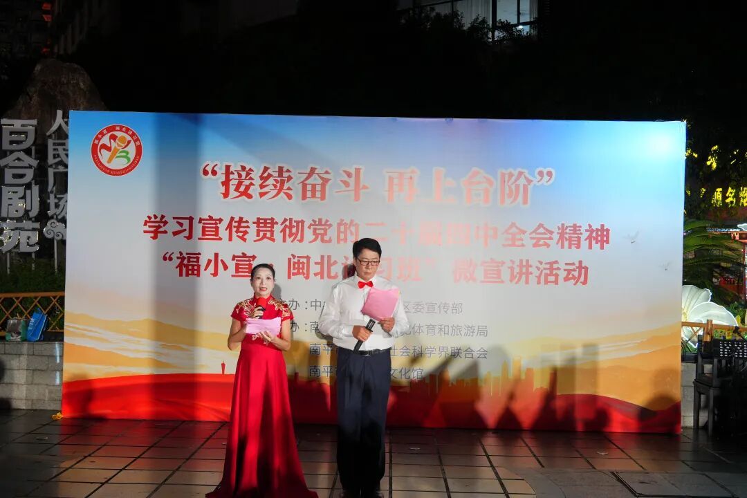 11月8日晚,“接續奮斗 再上臺階”——“福小宣·閩北講習班”微宣講活動在延平區“百合劇苑”舉行,活動融合“福見延平 百合劇苑”文化惠民工程暨街頭文化藝術展演,以“文藝演出+故事分享+非遺展示+互動交流”多維融合模式,生動彰顯“十四五”以來我區綠色高質量發展生動實踐,推動黨的二十屆四中全會精神落地生根。