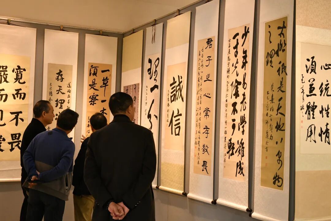 走進書法大廳,百余幅作品鋪陳其中,或遒勁有力,或舒展靈動,筆墨間盡顯功底。每一幅都承載著圣賢的智慧格言,文字平實卻意蘊深遠。淡淡的墨香縈繞其間,伴著展廳的靜謐,讓人在駐足觀賞中,不知不覺感受到傳統文化的浸潤,心生暖意與敬意。