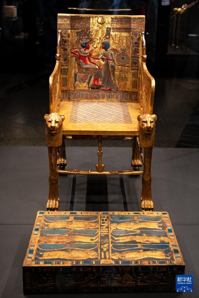 12月20日,游客在埃及吉薩的大埃及博物館觀賞法老圖坦卡蒙的神龕。 大埃及博物館是世界上最大的專門展示單一文明(埃及文明)的博物館,占地約50萬平方米,館藏文物超過10萬件,于11月4日正式向公眾開放。 新華社記者 辛夢晨 攝