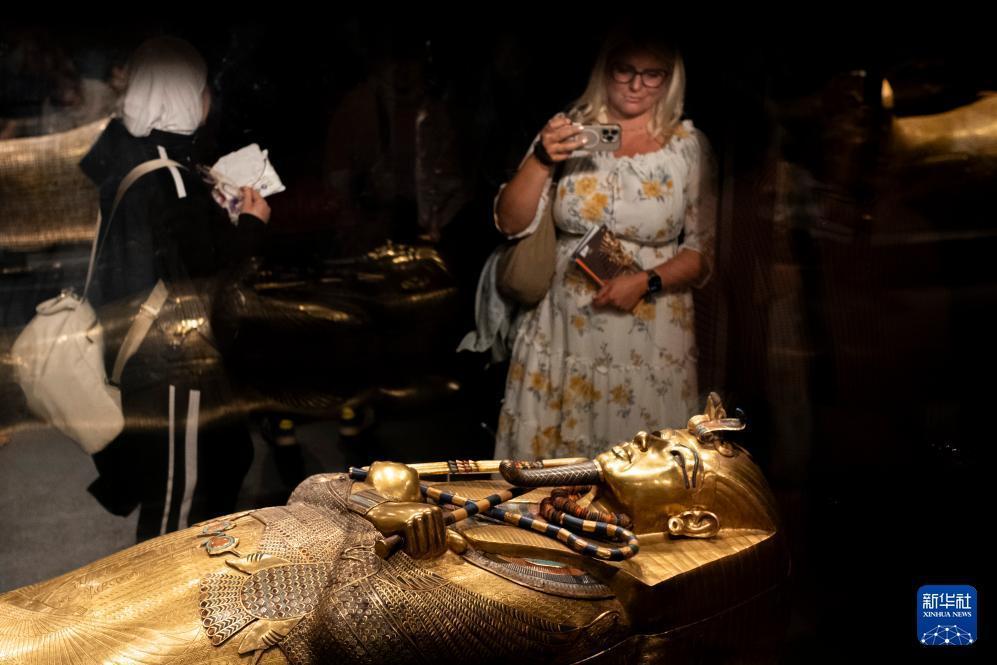 12月20日,游客在埃及吉薩的大埃及博物館觀賞法老圖坦卡蒙的黃金內棺。 大埃及博物館是世界上最大的專門展示單一文明(埃及文明)的博物館,占地約50萬平方米,館藏文物超過10萬件,于11月4日正式向公眾開放。 新華社記者 辛夢晨 攝