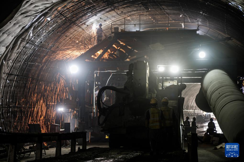 12月23日,施工人員在深圳外環田頭山隧道群右線隧道進行焊接作業。 12月23日,中鐵十一局承建的深圳外環高速三期田頭山隧道群斜井隧道和右線隧道匯合,隧道群進入大斷面施工階段。田頭山隧道群由五條隧道組成,最大施工斷面達468平方米。深圳外環高速三期工程穿越田頭山自然保護區,連接坪山區和大鵬新區。 新華社記者 毛思倩 攝